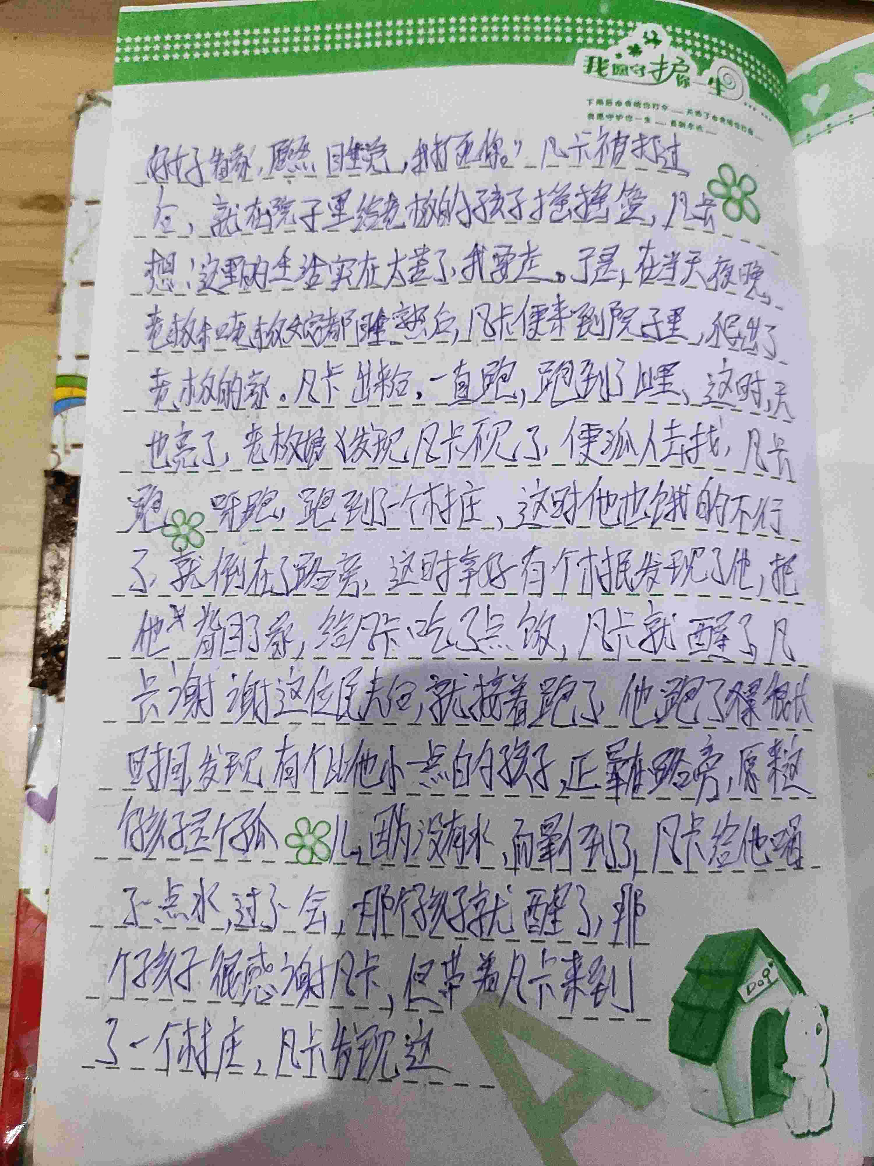 今天在爷爷家,找东西的时候无意间翻到了我小学时期的日记本,突然发现那个时候的我,想象力真的很丰富啊!下面是其中一天的日记,这应该是当时老师布置的作业,续写《凡卡》的故事,我都已经不记得凡卡是谁了,哈哈!我觉得唯一的缺点就是字写的太飘逸了。。。